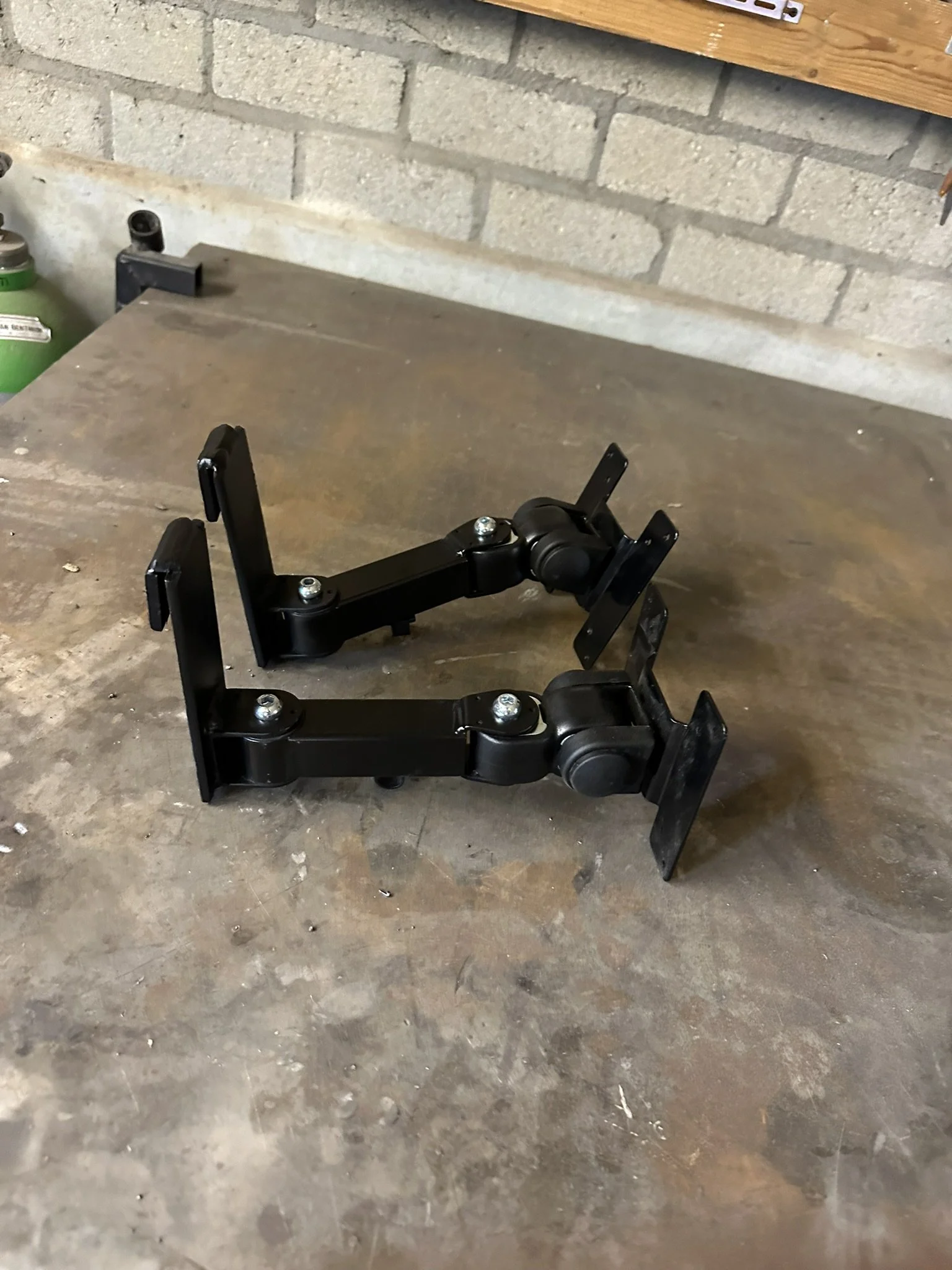 Op maat gemaakt monitor steunen voor montage aan het hekwerk.