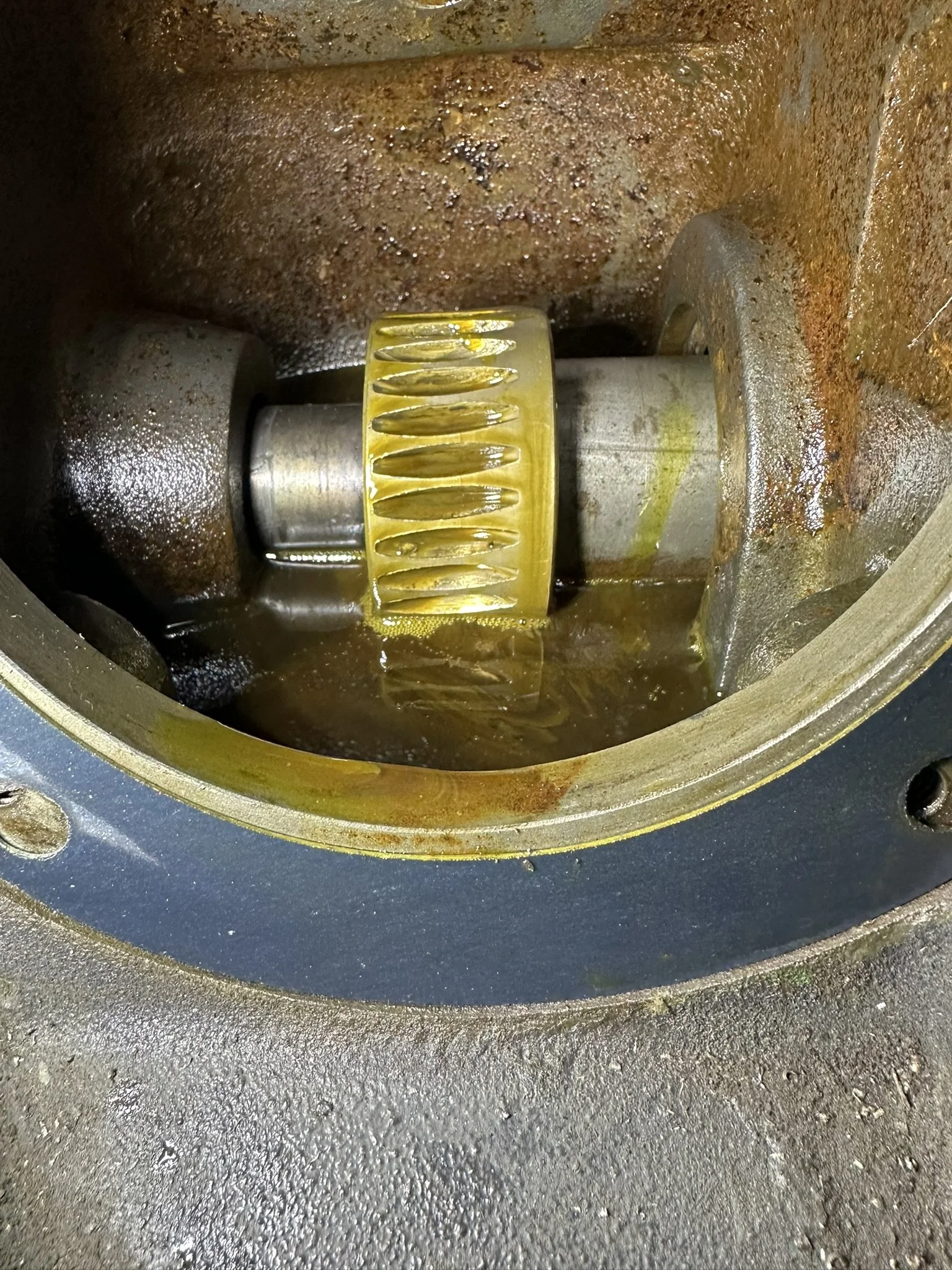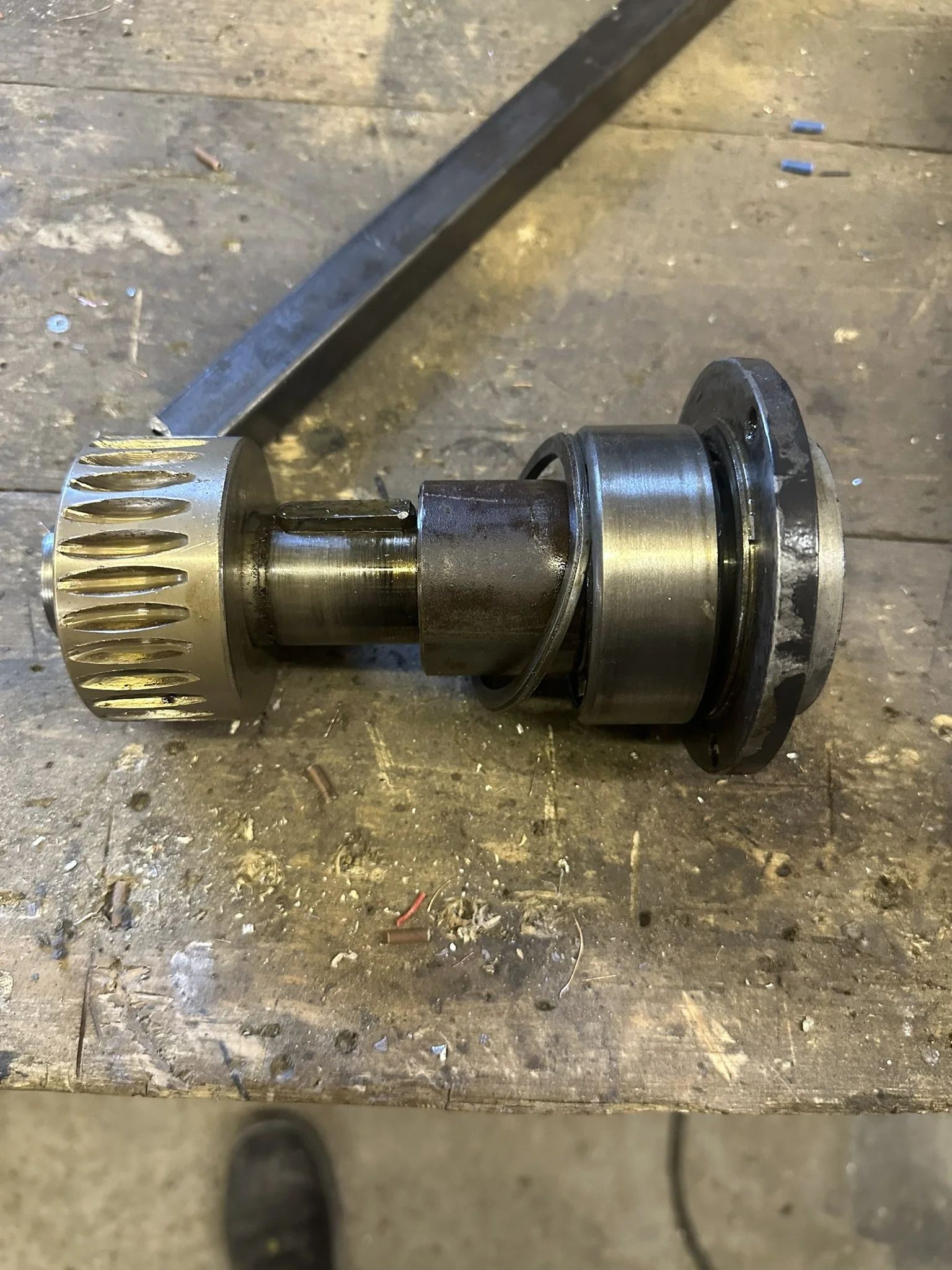 Door de hardheid van deze as was uitboren niet mogelijk, als oplossing is de as na demontage doormiddel van een warmtebehandeling zachter gemaakt, hierdoor is het mogelijk om de bout uit te boren en de as te voorzien van nieuwe schroefdraad. Na montage met nieuwe afdichtingen was de machine weer in goede staat.