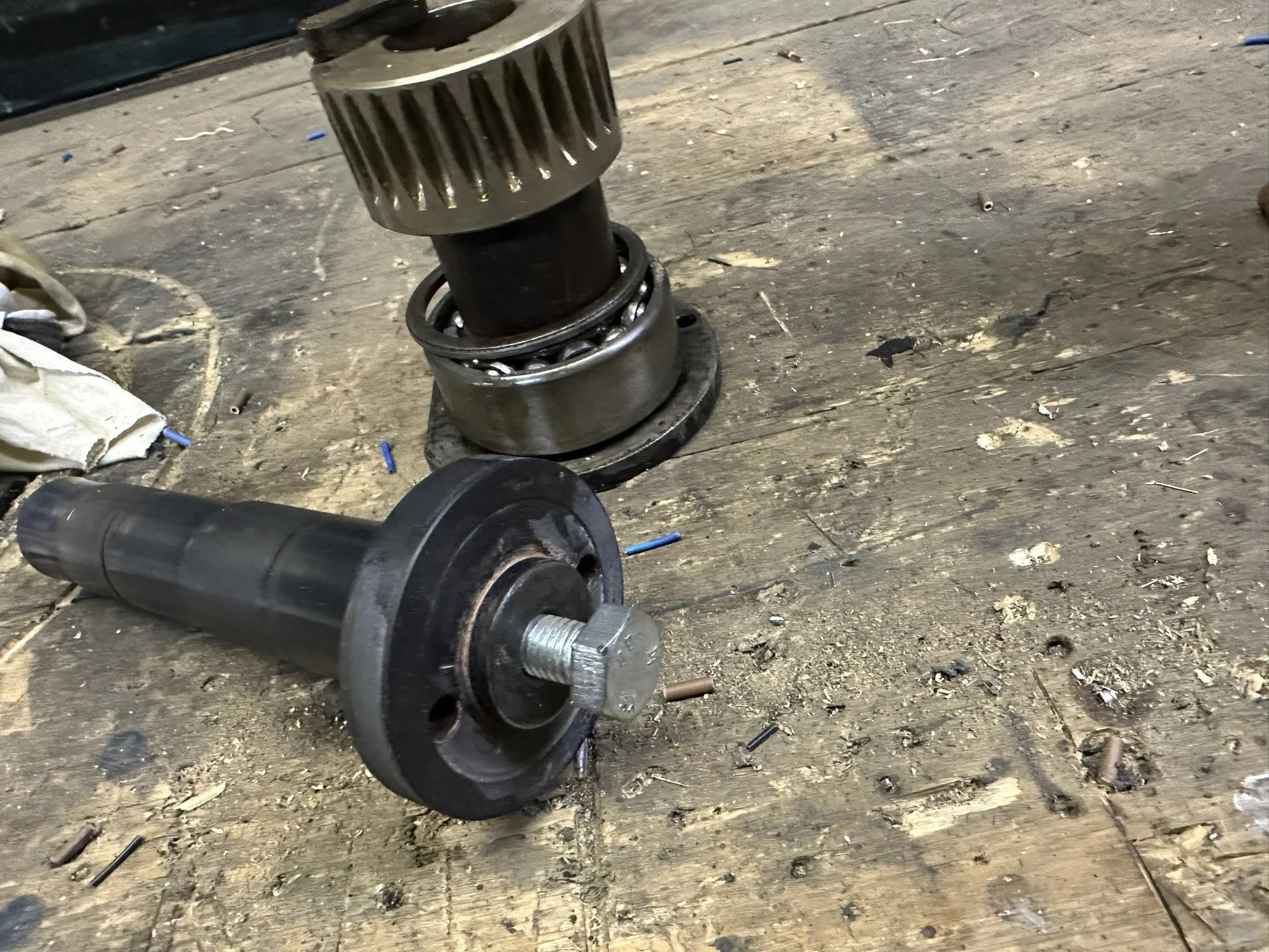 Reparatie van Bewo Zaagmachine, Zaagbout is afgebroken in de as bij demontage van de zaag.