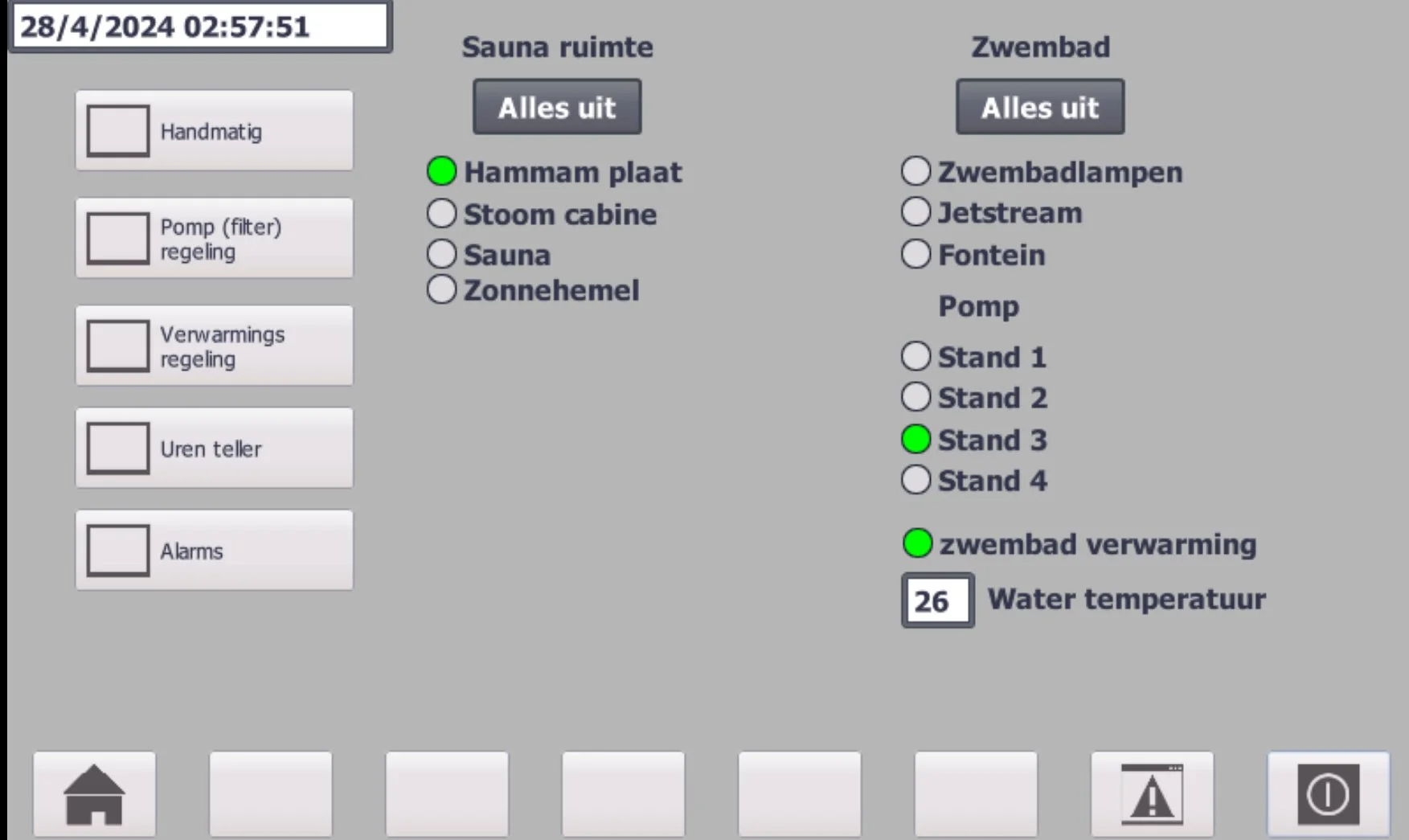 Met het touch scherm of de app kan de klant eenvoudig de status van het zwembad controleren en aanpassen. Met duidelijke grafische weergaven kunnen ze snel belangrijke informatie bekijken, zoals de watertemperatuur, de status van de pomp en de activatie van specifieke functies zoals de fontein en verlichting.